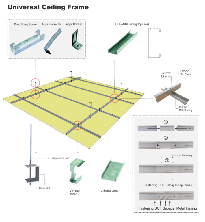 • Uses one profile type for dual functions: Metal Top, Cross, and Furring.